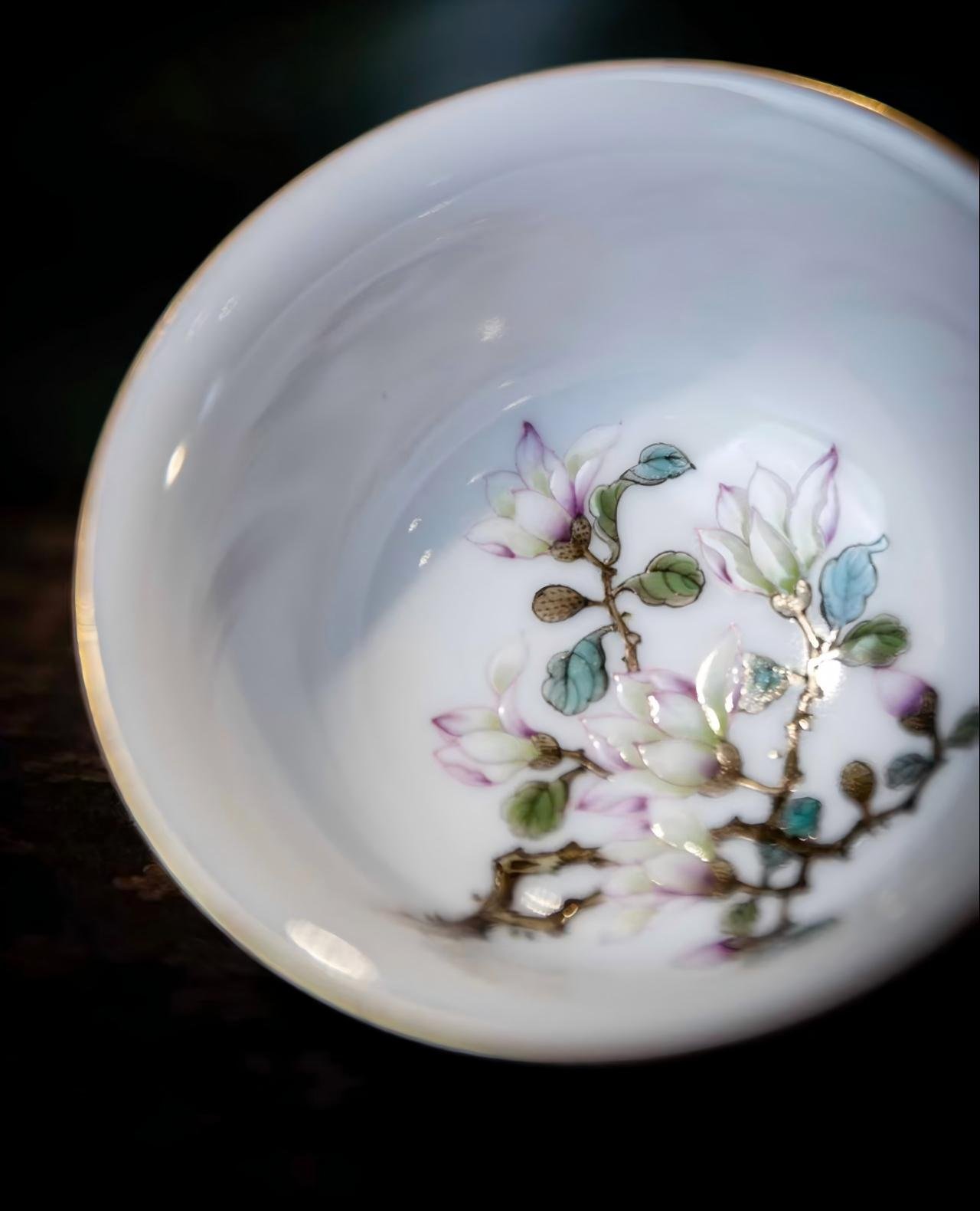 Gold-Decorated Rosy Red Magnolia Master Cup